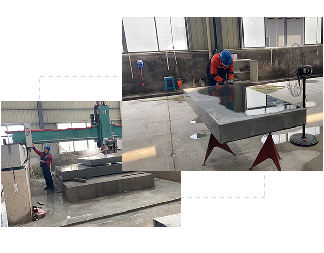 可完成工作臺上的鉆孔、開槽、鑲嵌金屬件等異型加工,在產品生產檢測過程中嚴格執行GB/T20428—2006巖石平板標準和G117—205平板計量檢定規程。